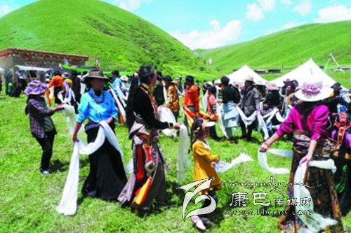 剛走進(jìn)宗塔壩子,記者便意識(shí)到一個(gè)人想象力的貧乏,現(xiàn)實(shí)中的宗塔草原以一種與眾不同的美把一個(gè)人的目光悄悄托起。四周長(zhǎng)滿牧草的小山像溫順的花瓣,靜靜包裹著那一片平坦的壩子,如果一個(gè)人眺望的目光足夠高足夠遠(yuǎn),山和壩子的造型會(huì)讓人聯(lián)想到一朵蓮花,而壩子里小點(diǎn)般的帳篷就像一顆顆蓮子,世世代代的宗塔人便在這蓮花般盛開的天地里穿行、繁衍生息。
