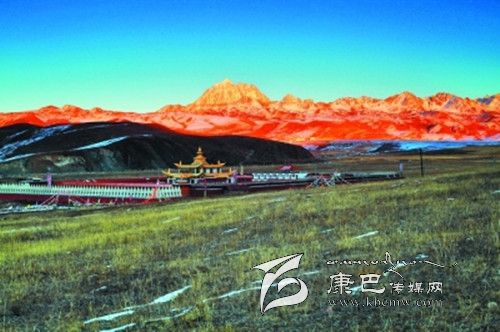 冬日的塔公草原。夕陽下,一個人緩步行在高低起伏、荒去了的草地。