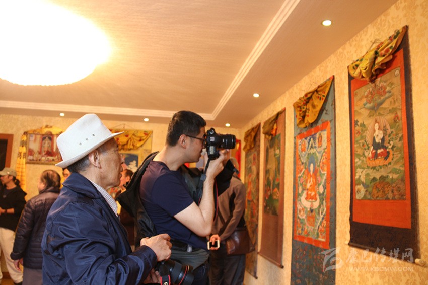 圖為參觀(guān)精品唐卡現(xiàn)場(chǎng)。