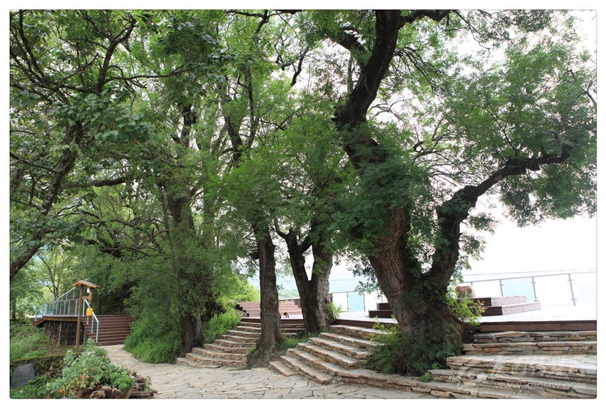 有欄桿的木質(zhì)棧道像一道城墻,沿山脊線而建,是觀光與休閑的好地方。