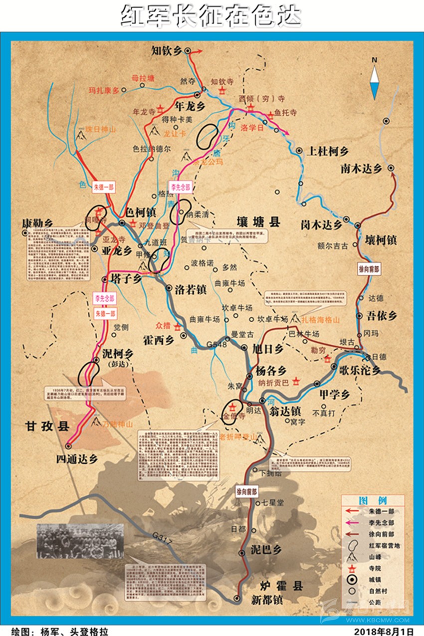 ●由王建安率領(lǐng)的紅四軍十二師、獨立師于六月二十九日從爐霍蝦拉沱出發(fā),七月三日到達(dá)色達(dá)。