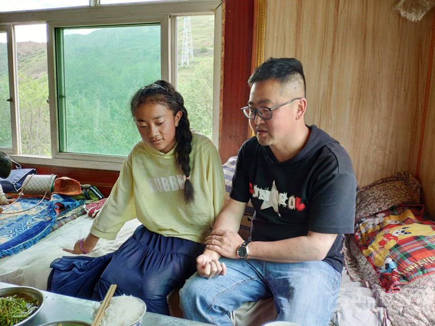 在路上,孫橙陽十分焦急,立刻和他學(xué)生洛絨巴登的媽媽、德拉龍村第一書記邱瑪溝通,想盡快與患者取得聯(lián)系。
