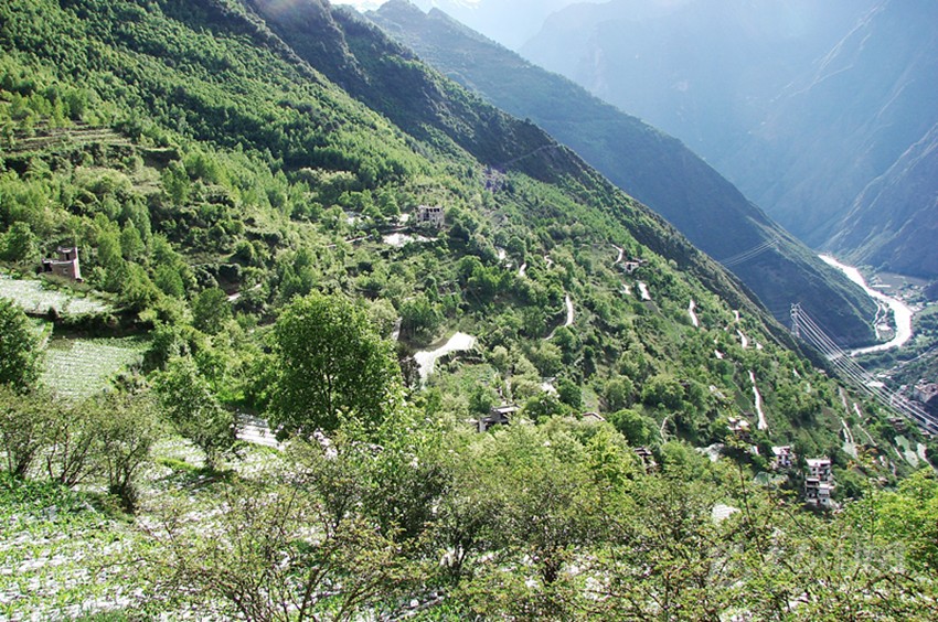 老家的中學地處峽谷之中,一條小溪從學校后面的峽谷中奔涌而出。由于這條溝谷里又有九條山脊,因此又稱為九道溝。各條小山谷里的溪流匯合之后,竟然形成了與河流大小相近的水流。當流經(jīng)中學旁時,狹窄的溝谷使得溪流狂躁起來,撞擊著兩岸的山崖,翻卷著浪花,發(fā)出震耳欲聾的聲響。最后匯入小金川河之中,向著遠處的大渡河奔去。