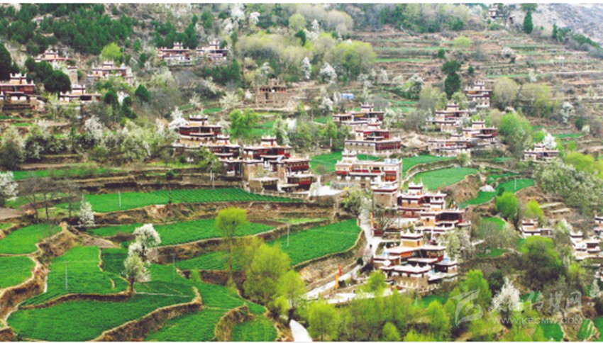 甲居,藏語(yǔ)是“百戶人家”的意思。實(shí)際上甲居藏寨分為一村、二村、三村共150余戶人家,700多人口,甲居藏寨所在地形如一個(gè)面積為5平方公里的大盆,大盆斜倚卡帕瑪群山,一棟棟外形別致、色彩鮮艷的典型嘉絨藏式民居錯(cuò)落有致地從山腳一直排到半山。甲居人一代一代修造的梯田點(diǎn)綴民居之間,顯示出別具一格的田園韻味。茂密的柏樹掩映著民居,這些別致的民居不象故宮規(guī)模對(duì)稱,也不象蘇州園林隨興布局。碉樓式的民居雖無嚴(yán)格的統(tǒng)一規(guī)劃,但卻似乎不是隨意而建,每棟民居都有它獨(dú)特?fù)屟鄣娘L(fēng)格。正是這些別具一格的座座碉樓民居,構(gòu)成甲居藏寨的精妙絕倫。民居外所立的經(jīng)幡以及房頂隨風(fēng)飄動(dòng)的瑪尼旗,又為恬靜如詩(shī)的鄉(xiāng)土民居增添了無限神秘的色彩。祥云籠罩山頂,溪水潺潺環(huán)流,山腳滾滾河流,山水渾映,天水合一,筆者一行不由驚嘆,甲居藏寨 ,名符其實(shí)的人間仙境,世外桃源!先前道路險(xiǎn)峻留在心底的驚懼早已一掃而光,一行人激動(dòng)著迫不及待地?fù)渖碛诿啦粍偈盏南删持小?/p>