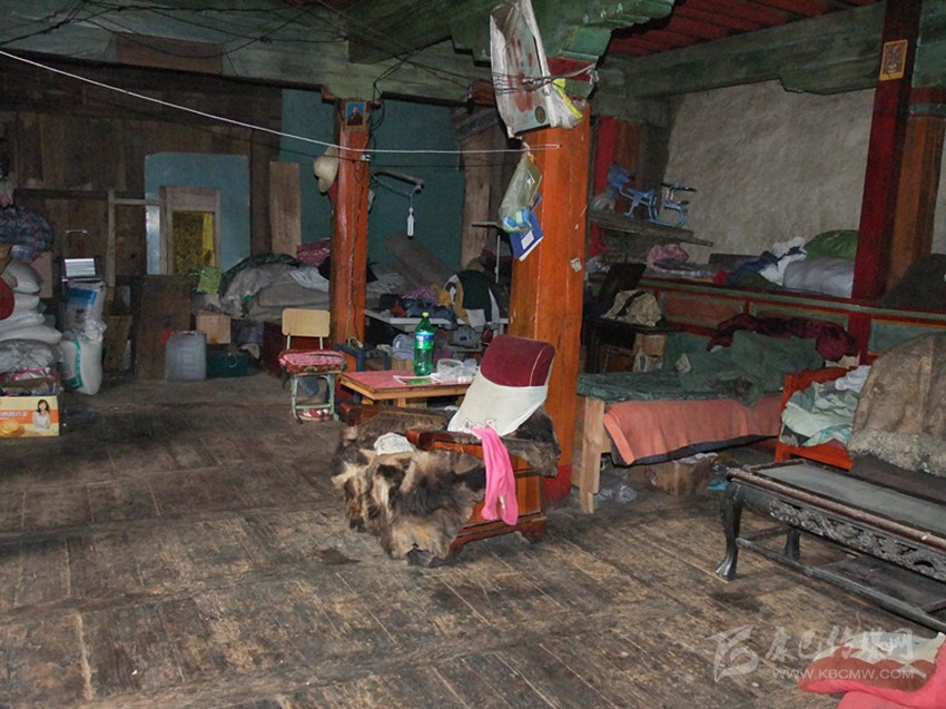 老屋鄰著折多河,靠著山腳修建,是典型的康定老式木板瓦房:一樓墻體石頭壘砌,混有土沙,住著冬暖夏涼,隔出兩間作為廚房和客廳。二樓整體木柱框架,木板墻與一樓緊密結合,是大家寢臥之地?,F在康定這樣構造的老屋已基本看不到了。