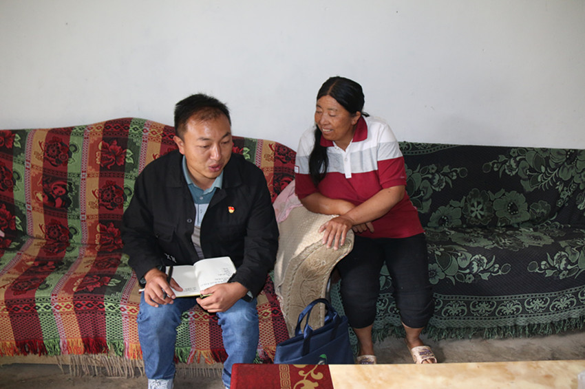 格西鄉(xiāng)專(zhuān)武部長(zhǎng)扎西澤仁和1999年退役的軍人劉索朗,他們負(fù)責(zé)白塔下方社區(qū)107戶(hù)群眾的生活補(bǔ)給、政策宣講、防疫消殺等工作,每天上午逐戶(hù)電話(huà)聯(lián)系,下午配送代購(gòu)物資,每天背著幾十斤重的噴霧器走遍社區(qū)各個(gè)角落。
