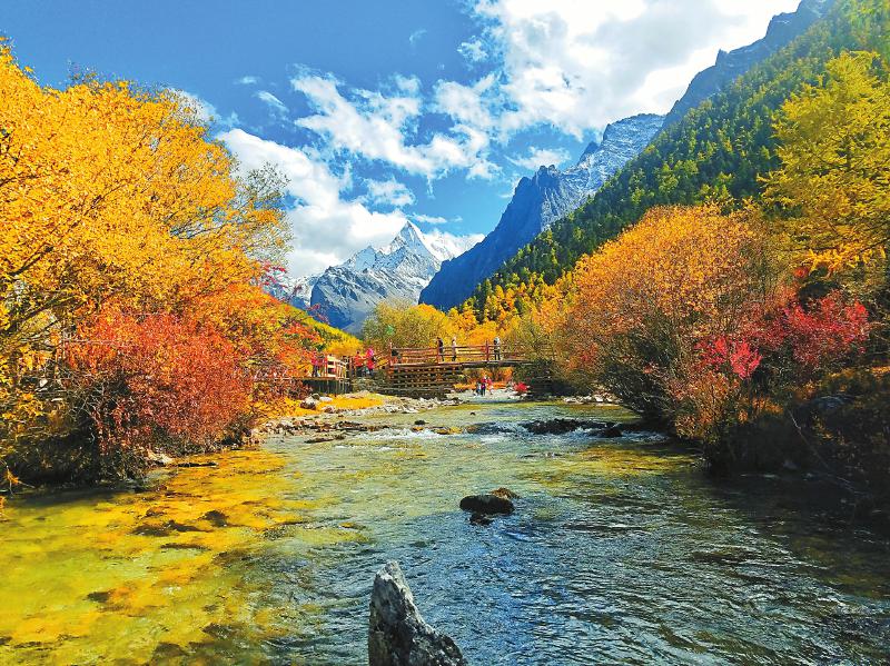 金沙江與G318線的交匯是在巴塘縣的竹巴龍,在這里一道長(zhǎng)虹般的大橋橫跨金沙江,連接川藏,G318線跨越大橋就進(jìn)入西藏。至今還清楚地記得,第一次邂逅金沙江大橋的情景。那是跟隨一位我特別敬重的老領(lǐng)導(dǎo)到巴塘縣開展農(nóng)業(yè)工作,激越奔泄的滔滔江水,連接?xùn)|西的宏偉大橋,還有驕陽(yáng)如火的村寨和熱情淳樸的父老鄉(xiāng)親……在我心里留下了深刻的印象,這就是G318線川藏的連接點(diǎn)。