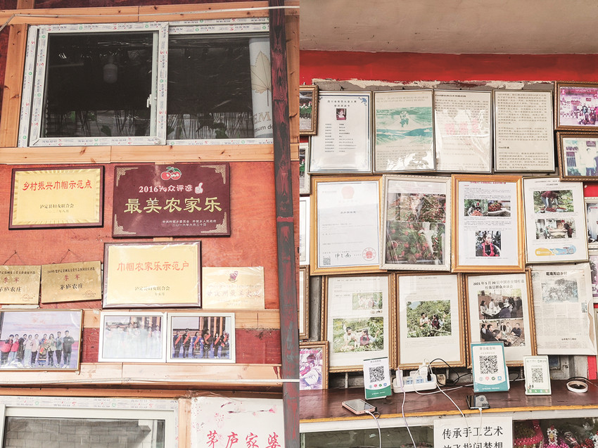 她說:“一開始,我的目的就是想掙錢,想要這個家庭擺脫貧困。在開辦這個農(nóng)莊之前,我家一直就在借債還債的循環(huán)中苦苦掙扎。天有不測風云,2006年丈夫華建做心臟手術(shù),2007年又做膽息肉手術(shù),花光了四處借來的四萬多塊錢,丈夫出院回家后,不能外出打工,又要急著還人家的錢,在無計可施的時候,我們想到了搞養(yǎng)殖,養(yǎng)魚魚死光了,養(yǎng)雞倒是成功了,但是賣不出去,基本虧了個底朝天。我只好四處打工,但是基本上都處于入不敷出的尷尬境地。”2013年長子華啟明住院做脾裂手術(shù),2015年公公腦梗,又去州醫(yī)院手術(shù),好像前半輩子就是借錢、還錢,拆東墻補西墻,無可奈何。正當經(jīng)濟上緊張得不可開交,覺得山窮水盡時,國家出臺了鄉(xiāng)村振興戰(zhàn)略,她響應(yīng)國家號召,想到了回到家鄉(xiāng)開辦農(nóng)家樂。第一年,在“婦女創(chuàng)業(yè)”貸款8萬元、信用社貸款16萬元,把農(nóng)家樂勉強辦起來了。在幾年的經(jīng)營中,“茅廬農(nóng)莊”的口碑越來越好,在2016年被杵坭鄉(xiāng)授予“2016大眾評選最美農(nóng)家樂”,在2018年人氣美食商家網(wǎng)評選為“瀘定縣網(wǎng)友喜愛美食商家評選季軍”,2019年人氣生態(tài)評選網(wǎng)評選為“瀘定縣網(wǎng)友喜愛生態(tài)休閑農(nóng)莊評選季軍”?,F(xiàn)在,農(nóng)莊的生意越來越好,規(guī)模越來越大,家里的日子越來越好,一家人也過上了幸福的生活。