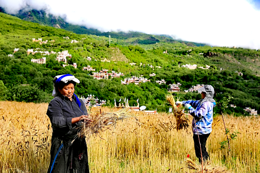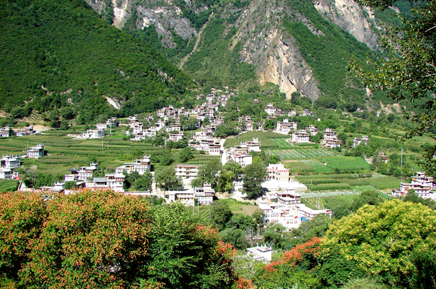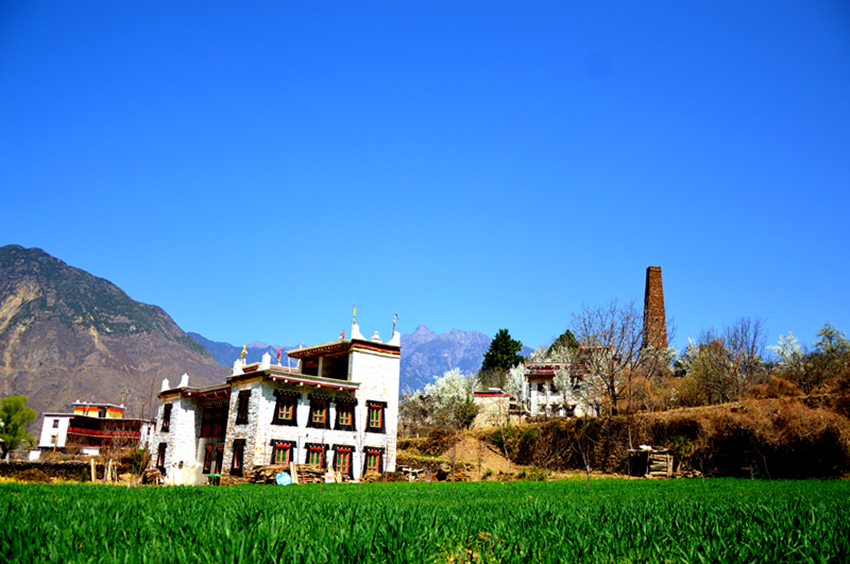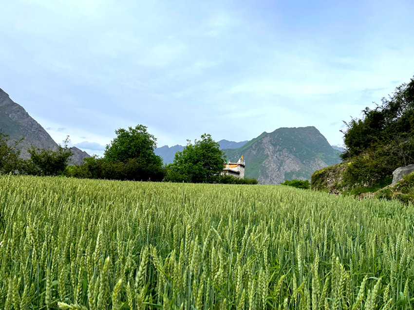 緊挨著草坪,是寨子里人們賴以生存的梯田。由于這里海拔較高的緣故,因此,只出產(chǎn)一些適應(yīng)在高原生長的胡豆、豌豆和青稞等農(nóng)作物。有時候,趁我們在水中嬉戲打鬧的時候,那些牛羊偷偷地跳進(jìn)莊稼地里。遠(yuǎn)處傳來“伊拉哇啦”的叫喊聲,我們連忙從水中爬出來,迅速地穿上衣物,向著莊稼地跑去。在田地旁,一位白發(fā)蒼蒼的老阿婆揮舞著雙手,一邊驅(qū)趕著地里的牛羊,一邊向我們大喊大叫。只是,這位阿婆由于天生不會說話,只會發(fā)出“伊拉哇啦”的聲響。為此,我們是不怕她的,占據(jù)有利的地勢,學(xué)著她的樣子。老人非常的氣憤,邁動著不甚靈活的腳步向我們走來。然而由于年老體衰,在我們這一群行動敏捷的小孩面前,只好作罷。每每此時,我們用藏語一起喊道“啞巴啞巴,能耐我何”。如今回想起來,確實(shí)不該,只是作為小孩,也只能自嘲小孩無罪了。