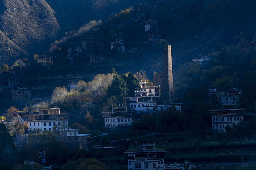 如果說衣著艷麗、高挑健美、輪廓分明、深情嫵媚的丹巴美女,實(shí)現(xiàn)了所有女孩子心中的浪漫的公主夢,少女心,是丹巴浪漫唯美氣息代表的話。那么筆直挺拔、棱角分明、飽經(jīng)風(fēng)雨、巍然屹立的碉樓,則是丹巴陽剛之美的代表。