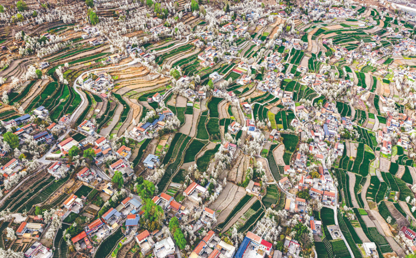 仙姿白雪帔青霞,月淡春濃意不邪。春分前后,云上新江南阿壩州金川縣,春和景明、花團(tuán)錦簇,春光無限好。大金川河水清澈明凈,蜿蜒流淌,河兩岸山間田野,千山萬壑,高低起伏、錯落有致,成片的梨花競相綻放,一枝枝、一團(tuán)團(tuán)、一簇簇,嬌艷欲滴,空氣中彌漫著梨花的芳香,恣意綻放的梨花,引來各地游客賞花踏青、漢服拍照、親子游玩;天空湛藍(lán),碧空如洗,潔白如雪的梨花,綠油油的麥苗,獨特的藏式建筑,讓金川縣有了“云上新江南·醉美梨花源”的美譽(yù),“雪梨花景觀”“紅葉景觀”被農(nóng)業(yè)農(nóng)村部評為“中國美麗田園”景觀,成為全國唯一獲得兩項桂冠的“中國美麗田園”目的地。3月底,四川省報紙副刊研究會“行阿壩·城鄉(xiāng)融合看金川”大型新聞采訪團(tuán)走進(jìn)金川,一幅路上山、田成格、渠成網(wǎng)、花成海的世外梨源美麗畫卷盡現(xiàn)眼前。