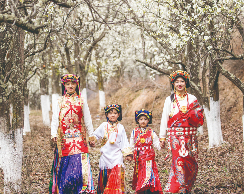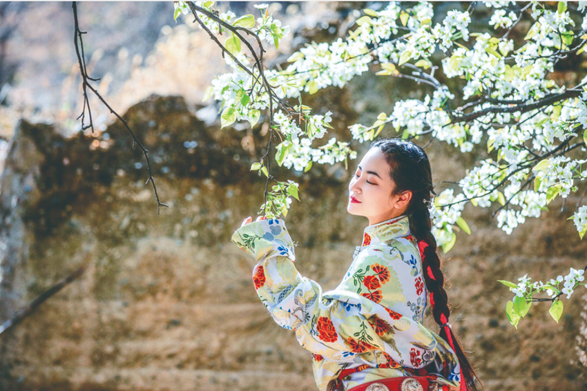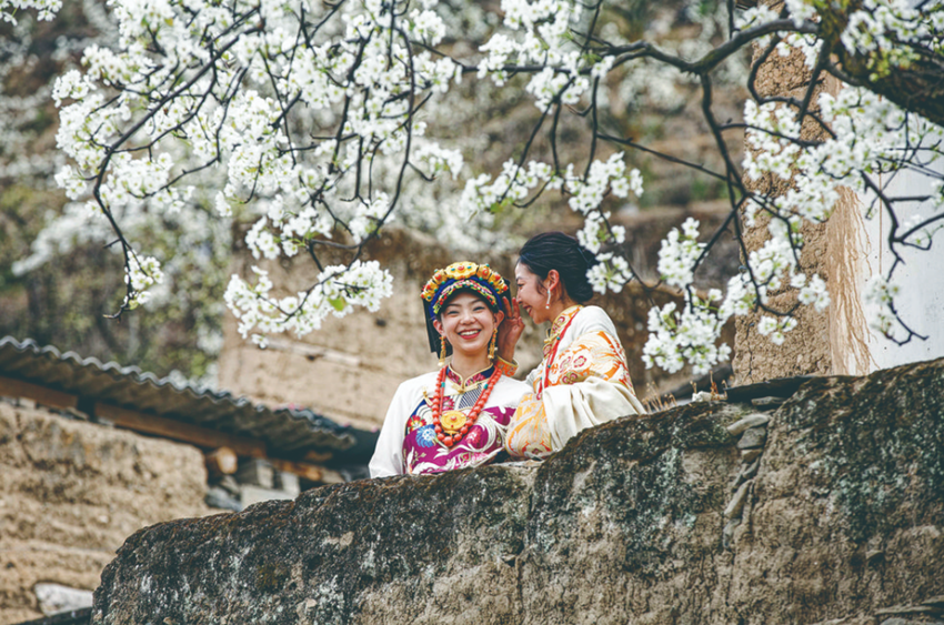 梨花樹下的金川姑娘。 蔡達(dá)林 攝