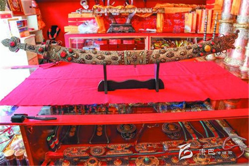 白玉縣城伍金經(jīng)營的河坡民族工藝品商店里人頭攢動,這里匯集了河坡出產(chǎn)的藏刀、佛具、法器、生活用品等各種手工藝精品。“家里祖祖輩輩都是手工藝人,我們也靠著售賣這些手工藝品為生,現(xiàn)在河坡工藝得到很多人的認(rèn)可,我們的日子是越來越好過了。”伍金說。