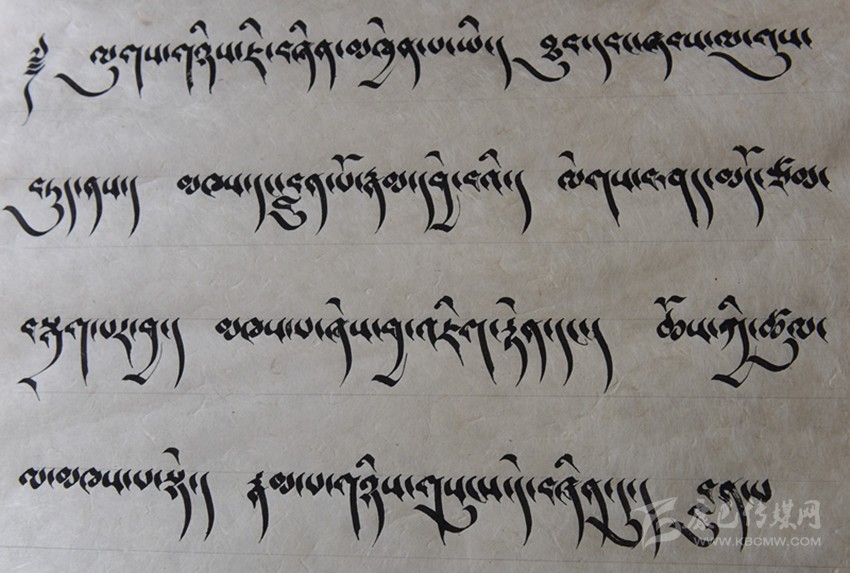 談到藏文書(shū)法作品,昂旺曲批喜歡用諸如“淳樸、干凈、善良”的字眼形容藏文書(shū)法作品的風(fēng)格?!耙粋€(gè)字就是一個(gè)人,字有肉也有骨頭。”這是昂旺曲批對(duì)“德珍派”書(shū)法的理解,在昂旺曲批眼中,藏文字都是有生命的,需要寧心靜氣方能通過(guò)手中的筆尖,彼此呼應(yīng)。