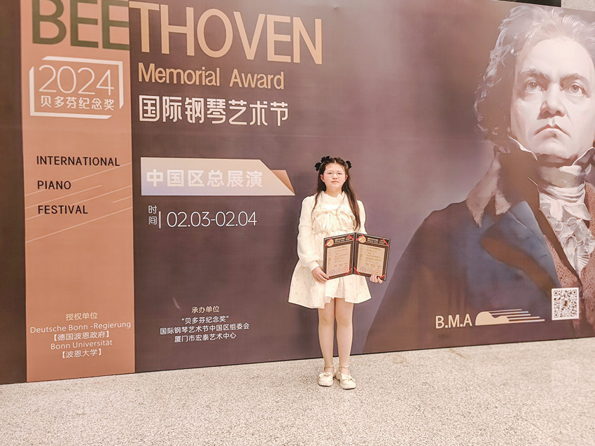 肖欣蕊在貝多芬國(guó)際鋼琴展演上獲獎(jiǎng)。 受訪者供圖