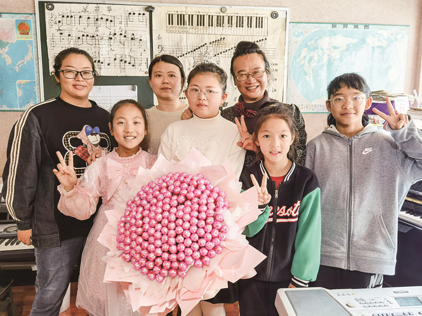 獲得榮譽(yù)后,肖欣蕊和老師、同學(xué)分享快樂(lè)。 受訪者 供圖