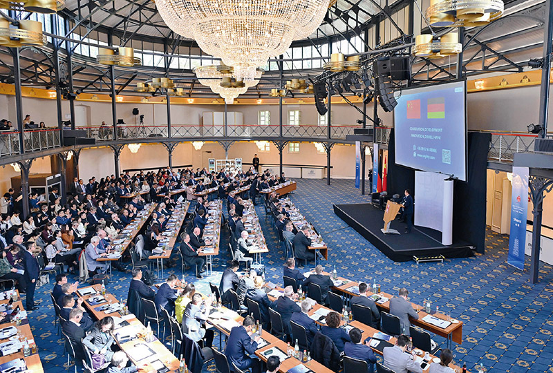 2024“投資中國”系列活動德國專場4月5日在巴登—符滕堡州首府斯圖加特市舉行,活動吸引德國工商界代表超300人參加。圖為當日拍攝的活動現(xiàn)場。 新華社記者 任鵬飛/攝