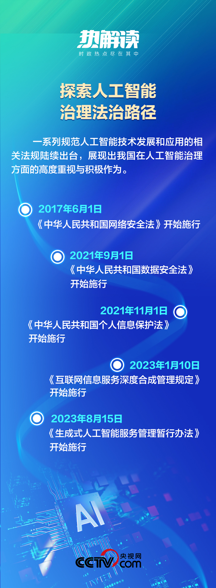 2023年10月,第三屆“一帶一路”國際合作高峰論壇開幕,習主席宣布中方提出《全球人工智能治理倡議》。這一倡議堅持“以人為本、智能向善”,為世界提供了基于人類命運共同體理念的人工智能治理新視角。