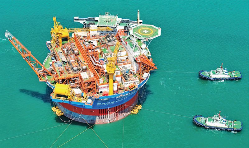 “海葵一號”,是亞洲首艘圓筒型浮式生產儲卸油裝置。該裝置集原油生產、存儲、外輸?shù)裙δ苡谝惑w,被網(wǎng)友們昵稱為“超級能源碗”,也是完全由我國自主設計建造的海上油氣加工廠。圖為2024年5月12日,“??惶枴睆闹袊S颓鄭u國際化高端裝備制造基地離港啟運。 人民圖片 張進剛/攝