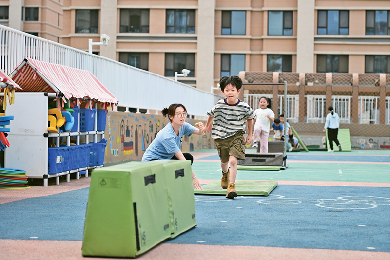 近年來,河北雄安新區(qū)通過創(chuàng)新教育發(fā)展體制機制、高標準配建教育設施、引入專業(yè)教師隊伍、引進優(yōu)質教育資源等方式,不斷推動教育高質量發(fā)展。圖為2024年5月23日,當?shù)赜變簣@的孩子們在室外活動。 新華社記者 牟宇/攝