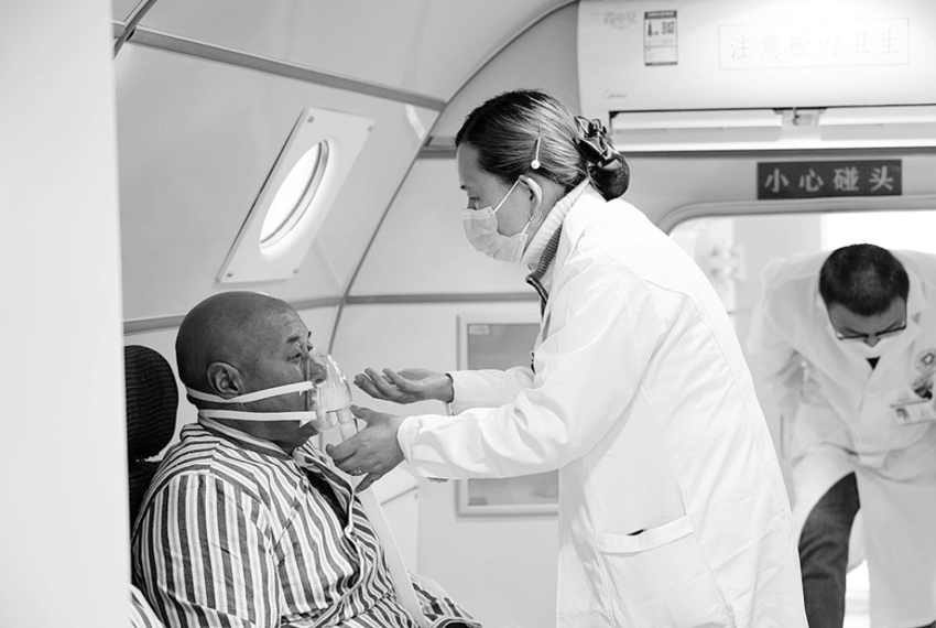 醫(yī)護(hù)人員在操控設(shè)備,同時(shí)全程密切關(guān)注艙內(nèi)情況。