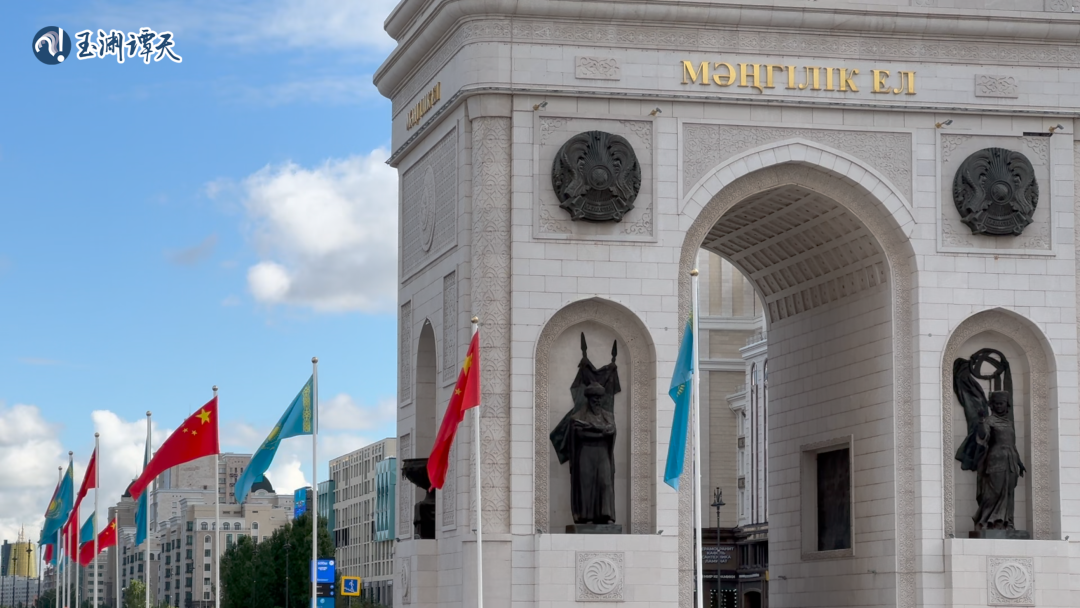 ||譚主抵達(dá)阿斯塔納,象征著哈薩克斯坦歷史的“凱旋門”周圍飄揚(yáng)著歡迎旗幟