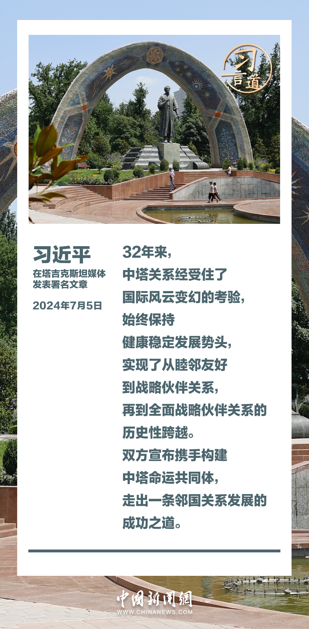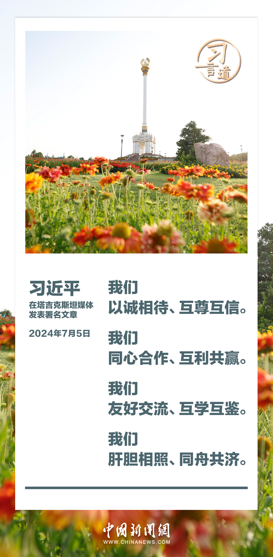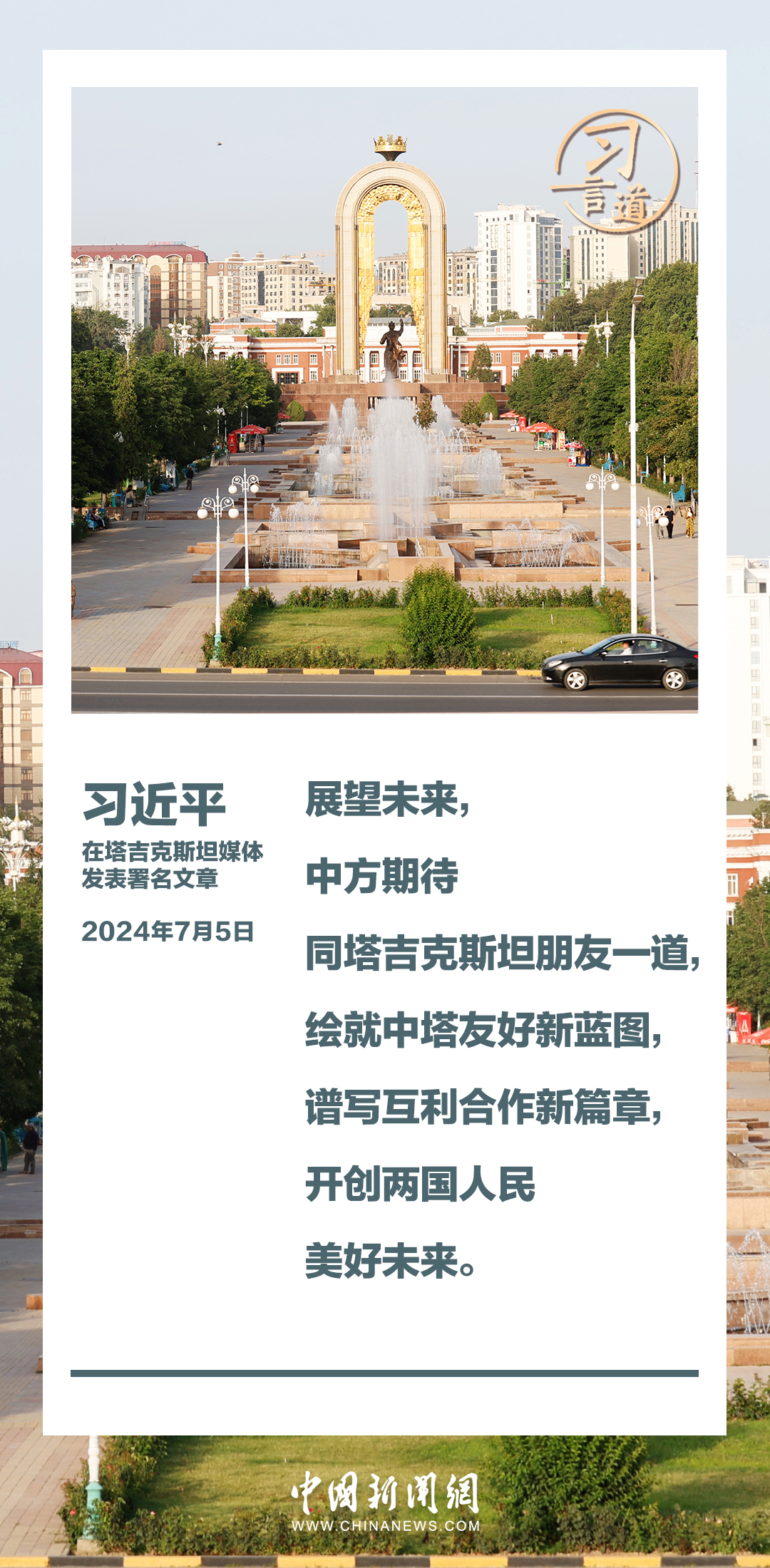 7月5日,在對(duì)塔吉克斯坦進(jìn)行國(guó)事訪(fǎng)問(wèn)之際,國(guó)家主席習(xí)近平在塔吉克斯坦《人民報(bào)》和“霍瓦爾”國(guó)家通訊社發(fā)表題為《共創(chuàng)中塔關(guān)系美好明天》的署名文章。習(xí)近平指出——
