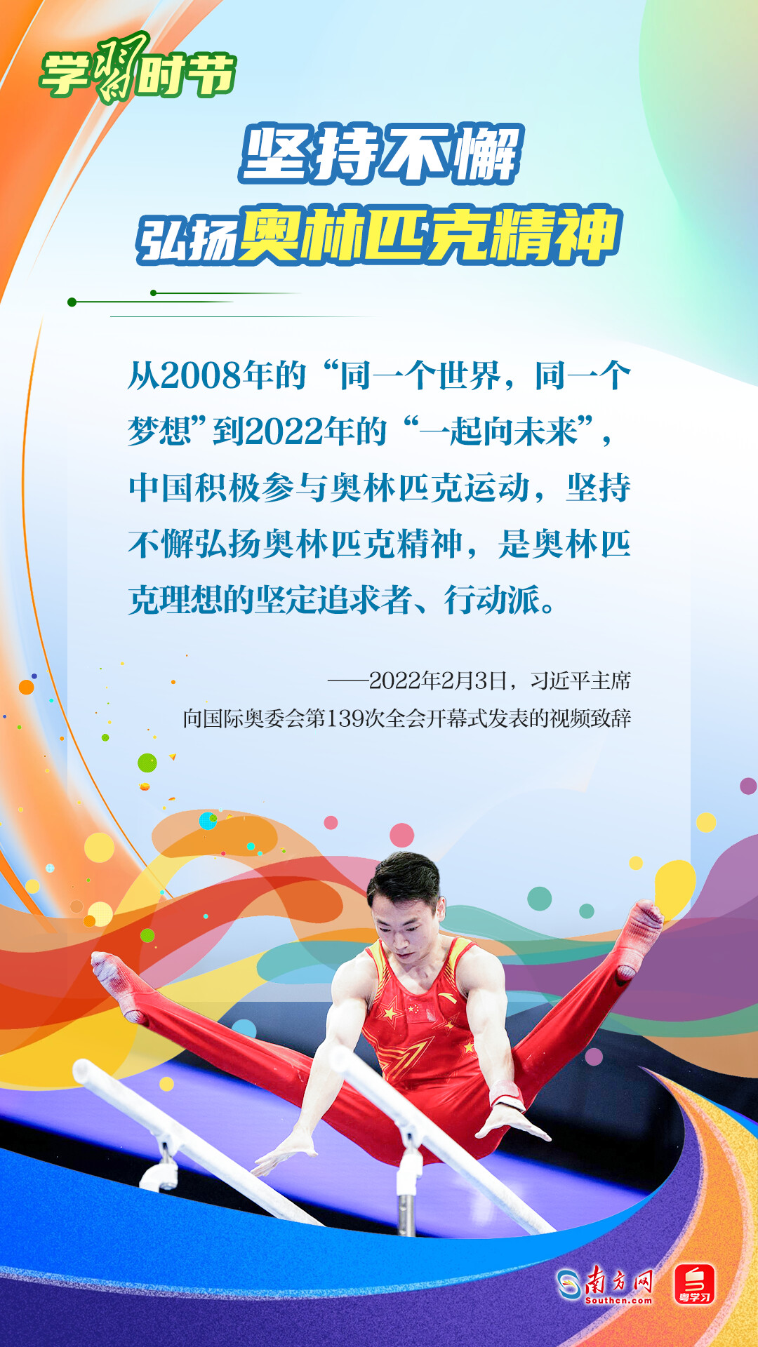 “我們不以勝負(fù)論英雄,同時英雄就要敢于爭先、敢于爭第一?!绷?xí)近平總書記曾在不同場合論述奧林匹克精神,深刻闡明了勝與負(fù)、成與敗的辯證關(guān)系,對奧林匹克“更快、更高、更強(qiáng)——更團(tuán)結(jié)”的格言進(jìn)行詮釋。讓我們一同學(xué)習(xí)習(xí)近平總書記對奧林匹克精神的重要論述,心懷夢想、奮勇拼搏,攜手走向美好明天。