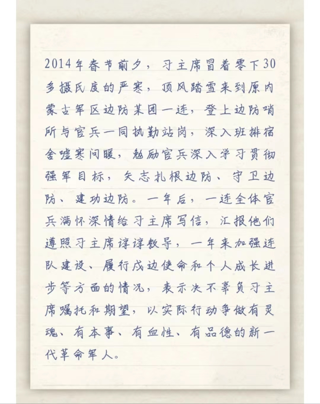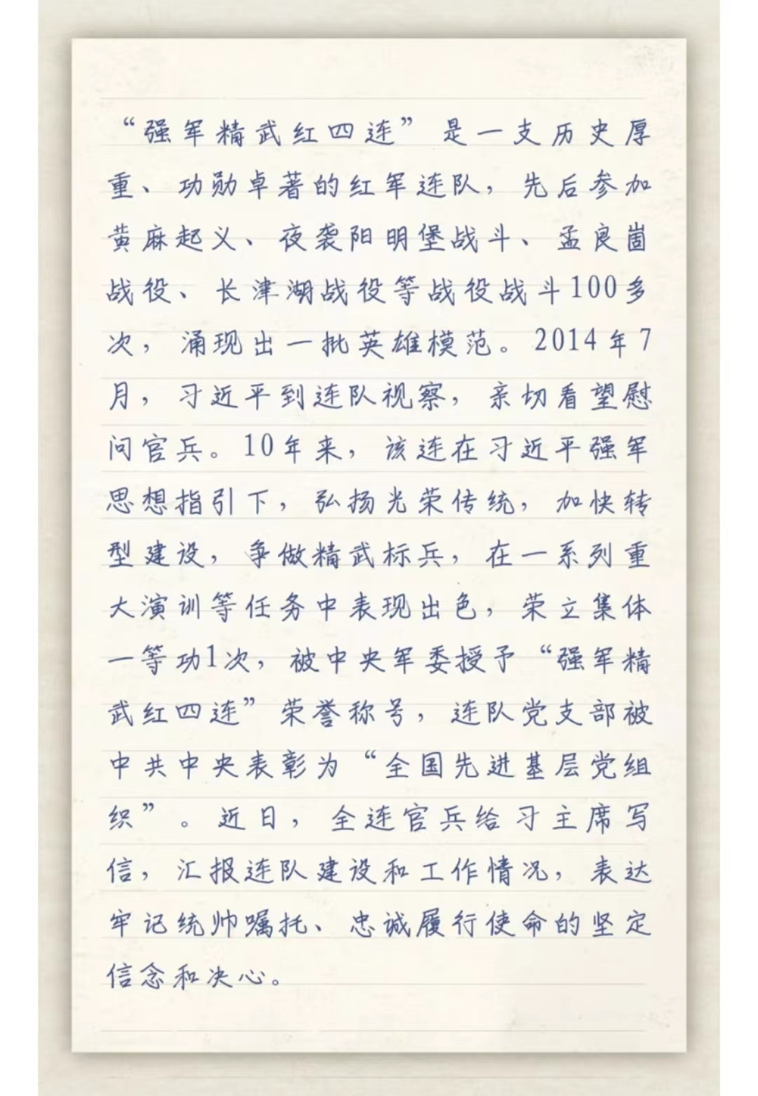 習(xí)主席給“強軍精武紅四連”全體官兵回信