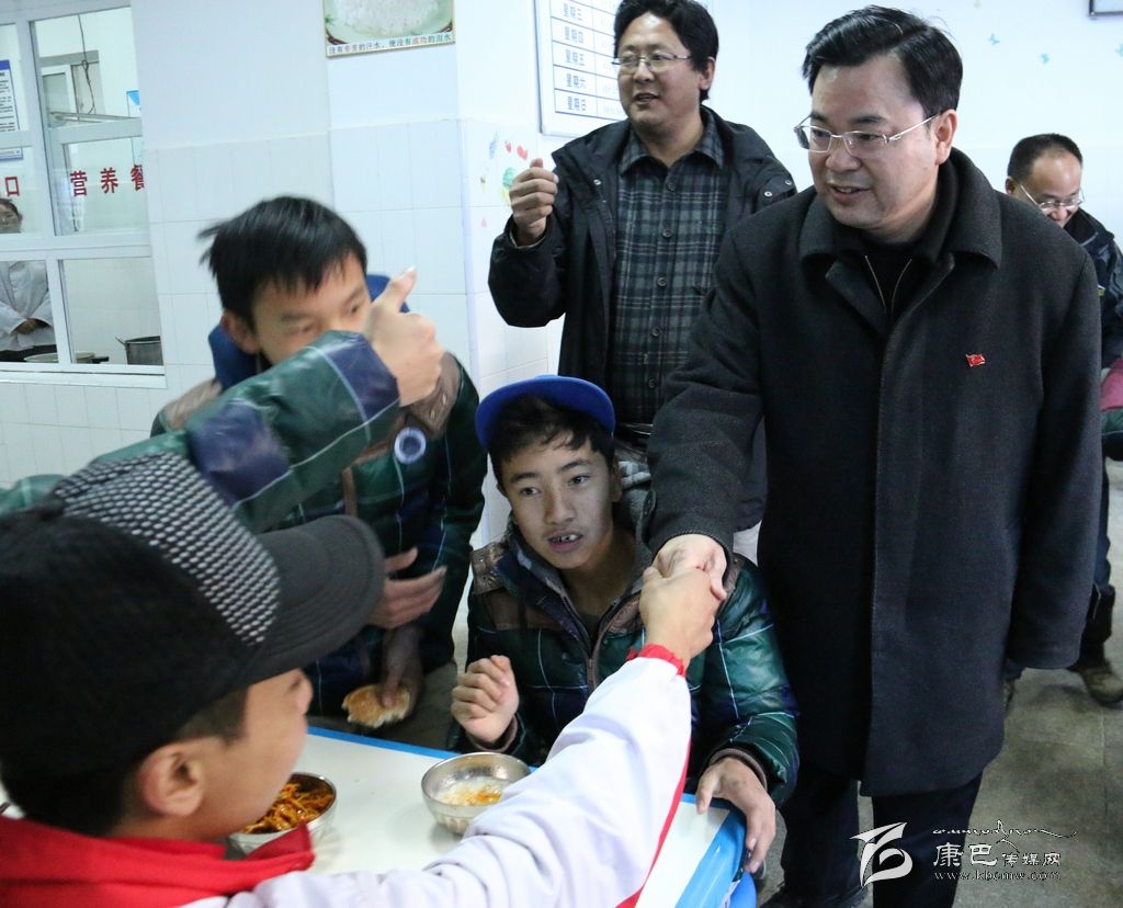 來到州特殊教育學(xué)校,學(xué)校校長澤仁郎吉告訴胡昌升,“地震來臨時,學(xué)校教師按照過去的地震應(yīng)急演練,組織全校80多名學(xué)生有序撤離,無一人受傷。地震發(fā)生后,家長到學(xué)??吹胶⒆佣己馨踩浅7判?rdquo;。胡昌升對該校在關(guān)鍵時刻及時有序疏散學(xué)生的做法給予了充分肯定。走進學(xué)校食堂,全校學(xué)生正在吃早飯,見到胡昌升一行,所有孩子都伸出手指,用手語向大家表示感謝。胡昌升對周圍的州教育局負責(zé)同志和學(xué)校老師說,學(xué)校要嚴密防控余震帶來的次生災(zāi)害,確保大家安全。