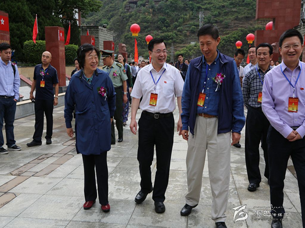 賀龍將軍之女賀曉明、楊成武將軍之子楊東明與州委書記胡昌升步入紀念大會現(xiàn)場。