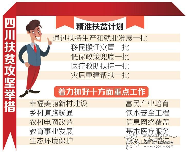 2014年,四川已摸清家底:全省共有11501個貧困村、88個貧困縣,168.48萬戶貧困戶和497.65萬貧困人口。四川省扶貧和移民局副局長劉兵說,目前正進入精準扶貧、精準脫貧的“攻堅拔寨”關(guān)鍵時期。7月初,四川出臺聚焦各類貧困人口的精準扶貧計劃,即通過扶持生產(chǎn)和就業(yè)發(fā)展一批、移民搬遷安置一批、低保政策兜底一批、醫(yī)療救助扶持一批、災后重建幫扶一批。