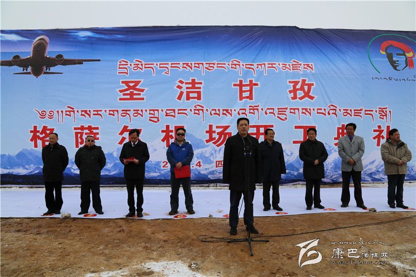 益西達(dá)瓦在致辭中指出,甘孜格薩爾機(jī)場是繼康定機(jī)場、稻城亞丁機(jī)場之后,我州建設(shè)的第三個機(jī)場,項目投資22.88億元,力爭2017年10月建成試飛。甘孜格薩爾機(jī)場的開工建設(shè),是我州實施“交通先行”戰(zhàn)略的重大舉措,對進(jìn)一步加快我州經(jīng)濟(jì)社會全面協(xié)調(diào)可持續(xù)發(fā)展具有十分重要的意義。該機(jī)場的建成,必將開啟我州“十三五”發(fā)展的新征程,必將推動我州經(jīng)濟(jì)社會實現(xiàn)新跨越,必將促進(jìn)我州旅游等產(chǎn)業(yè)實現(xiàn)新發(fā)展,必將加快我州農(nóng)牧民群眾脫貧奔康的新步伐。他說,建設(shè)甘孜格薩爾機(jī)場是全州人民特別是北路群眾多年的期盼,機(jī)場規(guī)劃在“十一五”、爭取在“十二五”、建設(shè)在“十三五”,飽含著中央領(lǐng)導(dǎo)和國家部委的厚愛,體現(xiàn)著省委、省政府的重視,凝聚著歷屆州委、州政府的心血,我們一定要倍加珍惜,一定要把甘孜格薩爾機(jī)場建設(shè)成一流的高原機(jī)場。希望甘孜、德格兩縣通力合作、協(xié)調(diào)配合,切實為機(jī)場建設(shè)營造良好的外部環(huán)境;希望州級相關(guān)部門簡化程序、搞好服務(wù),切實為該機(jī)場建設(shè)開辟“綠色”通道;希望廣大人民群眾多理解、多支持,切實擁護(hù)機(jī)場的各項建設(shè);希望各參建單位和廣大建設(shè)者發(fā)揚“亞丁機(jī)場精神”,努力把甘孜格薩爾機(jī)場建設(shè)成為一流的標(biāo)桿工程。