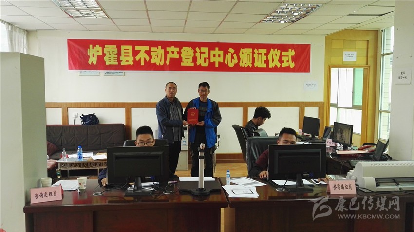 圖為我州爐霍縣頒發(fā)首張不動產(chǎn)登記證。(州國土資源局 供圖)
