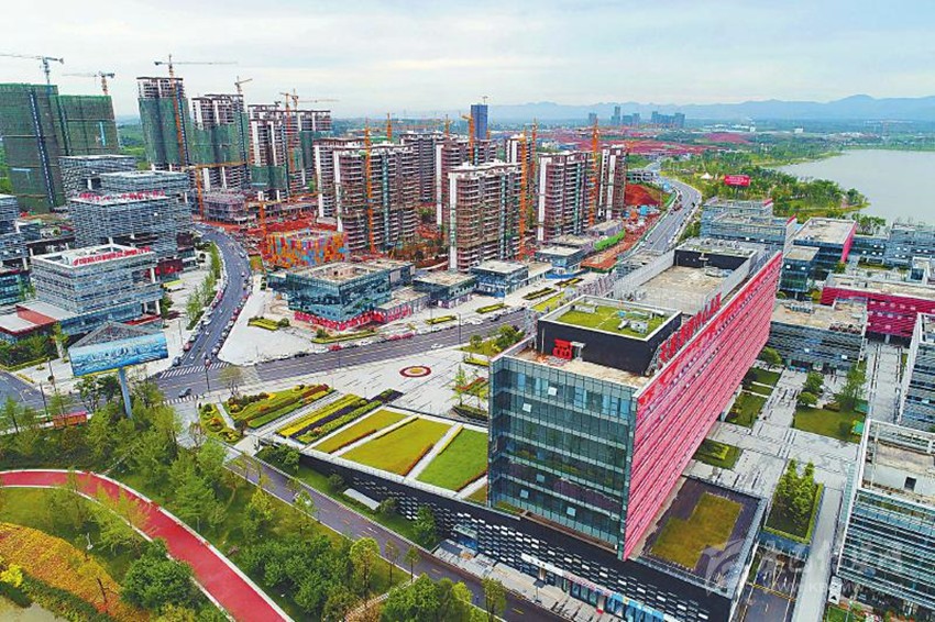 5月3日,“喜迎黨代會(huì) 天府新飛躍”全國主流新媒體瞰四川大型采訪活動(dòng)首站走進(jìn)成都市。圖為航拍的天府新區(qū)成都直管區(qū)的成都科學(xué)城。 姜曦 攝