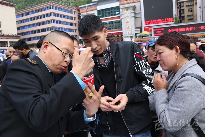 啟動儀式后,在康定情歌廣場上,來自州食安委和康定市食安相關(guān)成員單位通過現(xiàn)場咨詢、板塊展示、張貼海報標(biāo)語、發(fā)放資料等方式,為前來關(guān)注食品安全的市民們發(fā)放和講解相關(guān)問題。在現(xiàn)場,記者看到廣大市民關(guān)注最多的是假冒偽劣食品,對于如何識別,現(xiàn)場工作人員都一一進行了耐心細致地講解。