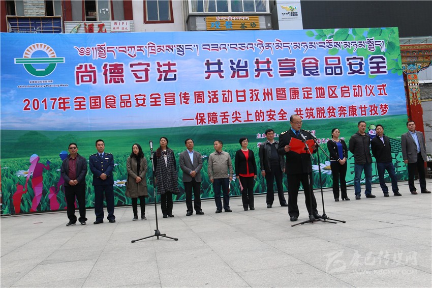 本網(wǎng)訊(記者 宋志勇 文/圖)6月29日,由州人民政府主辦的“2017年全國食品安全宣傳周活動”暨康定地區(qū)啟動儀式在康定舉行,目的是進一步普及安全法律法規(guī)和基本知識,提高公眾的食品安全意識和自我保護能力,進一步強化食品生產(chǎn)經(jīng)營者的法律意識、責(zé)任意識、誠信意識,進一步強化食品安全“政府負總責(zé)、監(jiān)管部門各司其責(zé)、食品生產(chǎn)經(jīng)營者是第一責(zé)任人”的責(zé)任,為構(gòu)建食品安全長效機制營造良好的氛圍。