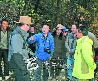 10日早上8點(diǎn)30分,益西達(dá)瓦又率隊(duì)騎馬從卡斯村進(jìn)入卡斯谷。一進(jìn)谷口,大家就被谷口小巧別致的巖溶鈣化彩池、千年古樹沖天柏所震撼。據(jù)說谷口沿線還有古冰川的遺跡,是雪峰、冰川、海子、瀑布、溫泉的共融體,國家二類保護(hù)植物干香柏,藥用植物蟲草、貝母、黃芪、大黃等也非常豐富。面對谷內(nèi)五彩繽紛的山色、野性激蕩的溪流、挺拔粗壯的古樹、枝椏橫溢的叢林、結(jié)實(shí)樸拙的木橋、壁立千仞的懸崖,考察隊(duì)員不禁驚呼:“這不就是阿凡達(dá)的故鄉(xiāng)嗎?”益西達(dá)瓦時(shí)而騎馬,時(shí)而步行,一邊察看景致,一邊興高采烈的與同行考察隊(duì)員和縣鄉(xiāng)村干部交談。景區(qū)怎樣規(guī)劃?怎樣建設(shè)?怎樣宣傳?景區(qū)取什么名字?為景區(qū)賦予什么樣的文化靈魂?哪里修棧道?哪里架索道?哪里修觀光電梯?都一一指導(dǎo),清晰地勾畫了卡斯谷開發(fā)藍(lán)圖。