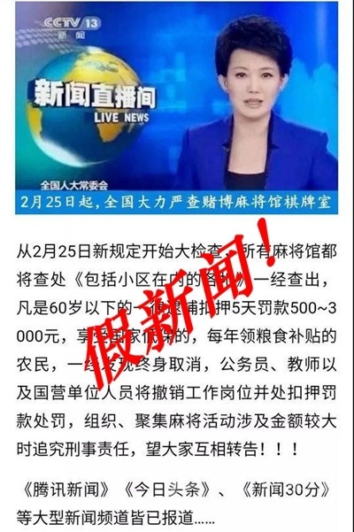 據(jù)介紹,“25日起全國嚴(yán)查棋牌室”的謠言最早出現(xiàn)在2014年,在此后幾年中,這條謠言改頭換面又反復(fù)出現(xiàn),而且出現(xiàn)的時間也有了規(guī)律,比如每年的5月1日(勞動節(jié)長假)前、9月1日(開學(xué))前、10月1日(國慶長假)前等。