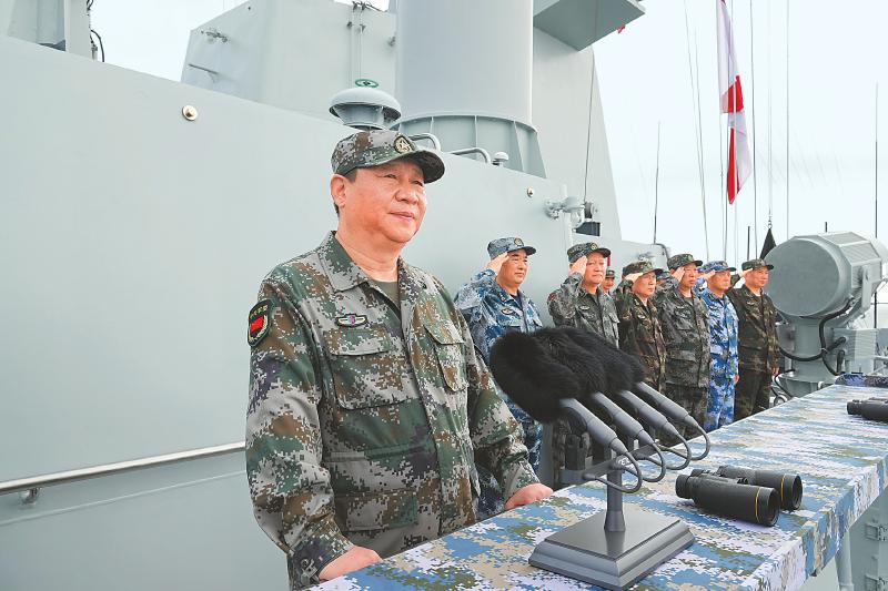 習(xí)近平的檢閱為受閱部隊(duì)開展實(shí)戰(zhàn)化軍事訓(xùn)練注入了強(qiáng)大動(dòng)力。受閱部隊(duì)帶著黨和人民的重托,迅即開赴訓(xùn)練海域,一場跨區(qū)實(shí)兵演練在海上全面展開。