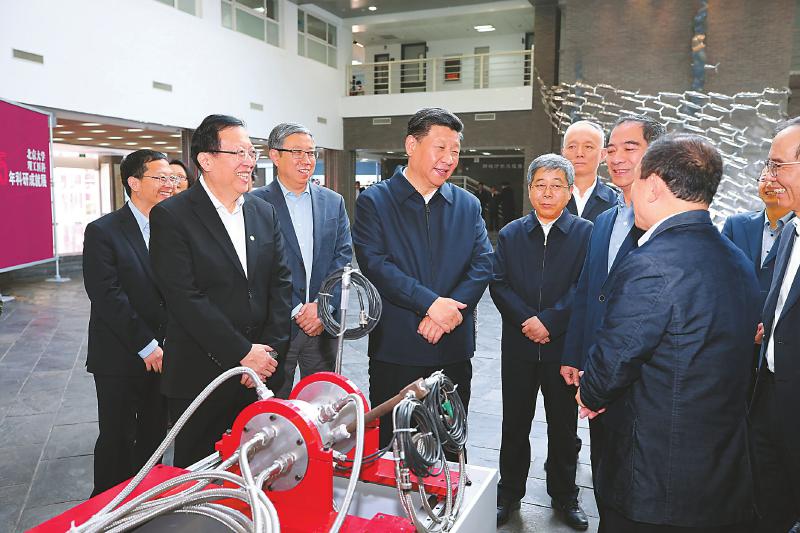 近年來(lái),北京大學(xué)培養(yǎng)和匯聚了一批具有世界領(lǐng)先水平的科學(xué)家、科技領(lǐng)軍人才和創(chuàng)新團(tuán)隊(duì),科研綜合實(shí)力、原始創(chuàng)新能力顯著增強(qiáng)。在金光生命科學(xué)大樓一層大廳,展示了近年來(lái)北京大學(xué)在理科、工科、醫(yī)科等領(lǐng)域的科研成果。習(xí)近平認(rèn)真聽取關(guān)于學(xué)校學(xué)科建設(shè)、人才隊(duì)伍建設(shè)、科研創(chuàng)新能力提升等情況介紹,并仔細(xì)察看新一代干細(xì)胞技術(shù)、碳芯片技術(shù)、微型雙光子顯微成像系統(tǒng)等科研裝置和實(shí)物模型。習(xí)近平對(duì)大家說(shuō),看了你們的成果展示,我為你們感到驕傲。創(chuàng)新是引領(lǐng)發(fā)展的第一動(dòng)力,是國(guó)家綜合國(guó)力和核心競(jìng)爭(zhēng)力的最關(guān)鍵因素。重大科技創(chuàng)新成果是國(guó)之重器、國(guó)之利器,必須牢牢掌握在自己手上,必須依靠自力更生、自主創(chuàng)新。在這個(gè)問題上,我們一定要保持清醒。要繼續(xù)深化科技體制改革,把人、財(cái)、物更多向科技創(chuàng)新一線傾斜,努力在關(guān)鍵共性技術(shù)、前沿引領(lǐng)技術(shù)、現(xiàn)代工程技術(shù)、顛覆性技術(shù)創(chuàng)新上取得更大突破,搶占科技創(chuàng)新制高點(diǎn)。高校是科技創(chuàng)新體系的重要組成部分,高??蒲腥藛T是我國(guó)科技創(chuàng)新的重要隊(duì)伍。要加強(qiáng)學(xué)科之間的協(xié)同創(chuàng)新,加強(qiáng)對(duì)交叉學(xué)科群和科技攻關(guān)團(tuán)隊(duì)的支持,培養(yǎng)造就更多具有國(guó)際水平的科技人才和創(chuàng)新團(tuán)隊(duì)。
