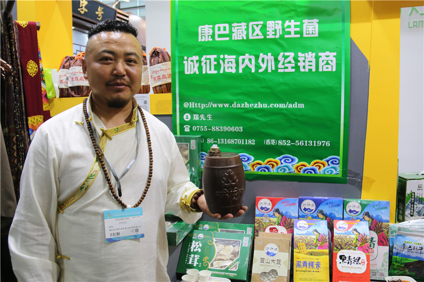 本網(wǎng)訊(記者 宋志勇 文/圖)“這是什么菌類,是野生的嗎?”“是的,是高原野生松茸,還有牦牛肉等,都是本地原生態(tài)綠色產(chǎn)品?!?月13日,參加第十四屆(深圳)文博會的康定市達(dá)折渚生態(tài)農(nóng)畜產(chǎn)品開發(fā)有限公司負(fù)責(zé)人洛布,對前來我州展館購買產(chǎn)品的市民和游客們肯定地說,圍在展臺的人們在品嘗到可口的牦牛肉產(chǎn)品的同時(shí),還詢問包裝好的野生菌、青稞等系列產(chǎn)品。