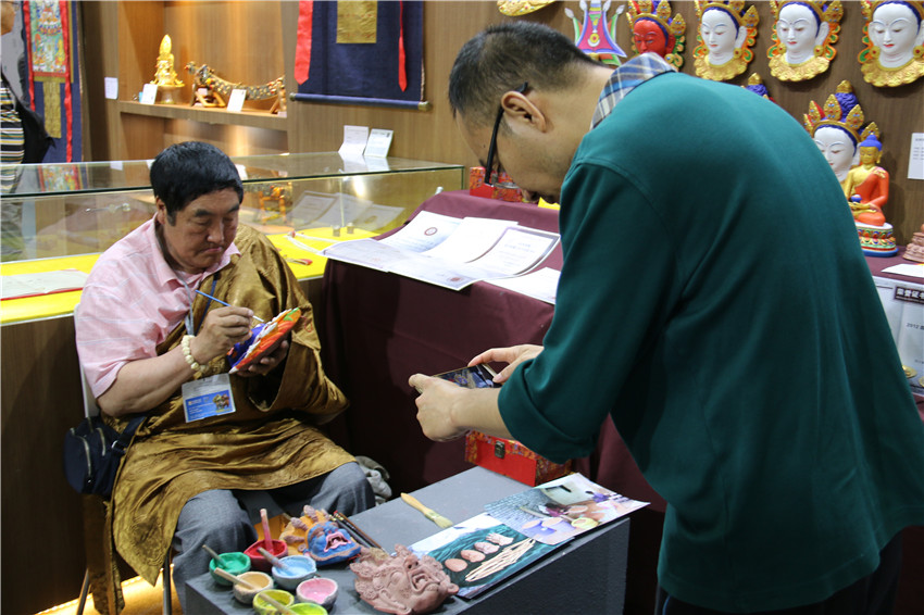 記者又分別走訪幾家參展商,鄉(xiāng)城縣文化旅游局羅絨扎姆說(shuō),我們的十二生肖(唐卡)已經(jīng)賣出六幅多了,咨詢的也接二連三,有的訂了單,還有的有意向。接著,部分商家道出心理話。新龍藥泥面具傳承人四龍降澤說(shuō), 11日就賣了1700多元;瀘定縣冰川水晶加工廠涂娟說(shuō),兩天銷售凈賺10000元;而藏藝通旅游文化有限公司行政助理格桑達(dá)美說(shuō),這兩天圍巾和小的掛件銷售量比較好,收入接近10000元,隨著周末的到來(lái),人流量會(huì)逐步增加,相信到那時(shí)我們的銷量也會(huì)攀升。