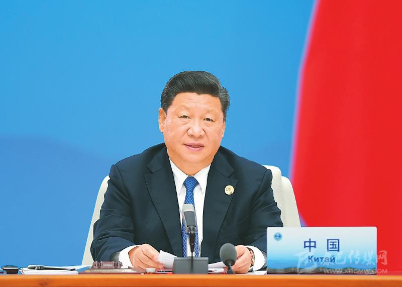 習近平指出,上海合作組織始終保持旺盛生命力、強勁合作動力,根本原因在于它創(chuàng)造性地提出并始終踐行“上海精神”,主張互信、互利、平等、協(xié)商、尊重多樣文明、謀求共同發(fā)展。當今世界,國際關(guān)系民主化已成為不可阻擋的時代潮流,安全穩(wěn)定是人心所向,合作共贏是大勢所趨,不同文明交流互鑒是各國人民共同愿望。我們要進一步弘揚“上海精神”,提倡創(chuàng)新、協(xié)調(diào)、綠色、開放、共享的發(fā)展觀,踐行共同、綜合、合作、可持續(xù)的安全觀,秉持開放、融通、互利、共贏的合作觀,樹立平等、互鑒、對話、包容的文明觀,堅持共商共建共享的全球治理觀,破解時代難題,化解風險挑戰(zhàn)。