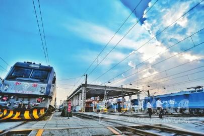 8月6日,中國鐵路成都局集團有限公司成都機務(wù)段,南向班列(成都)從這里開往城廂站,駛往欽州港。