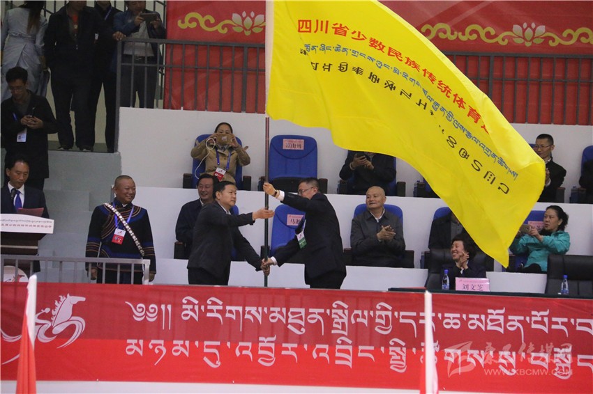 閉幕式上舉行了會旗交接儀式,由甘孜州委常委、州人民政府副州長李一昕將運動會會旗交還組委會副主任、省民族宗教委主任張富國,由張富國將會旗轉交給下屆民族運動會承辦單位代表涼山州委常委、州人民政府副州長裴啟斌。四川省第十六屆少數(shù)民族傳統(tǒng)體育運動會將于2022年在涼山州舉行。
