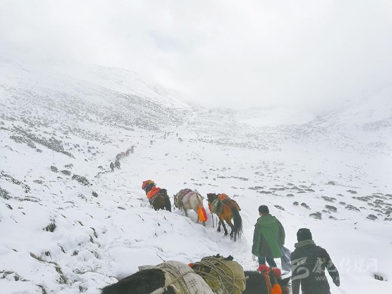 成都市雙流區(qū)對口支援甘孜州巴塘縣的援藏干部們下鄉(xiāng)途中翻越海拔5503米的拉瑪拉雪山。 韓國梁 攝