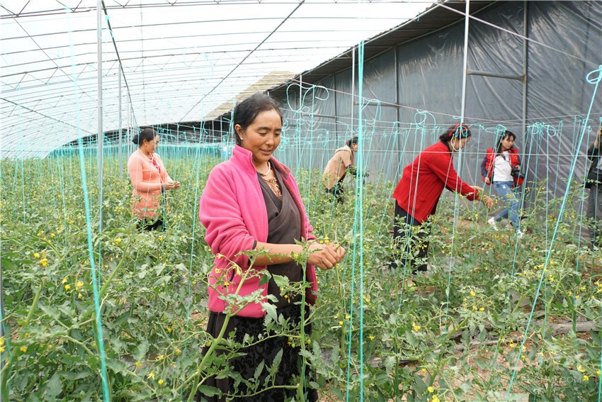 爐霍縣高原現(xiàn)代生態(tài)產(chǎn)業(yè)園勞作的當(dāng)?shù)卮迕瘛?/span>王明陽 攝