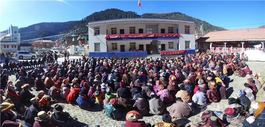 把黨的十九大精神送到鄉(xiāng)村。 色達(dá)縣委中心報(bào)道組供圖