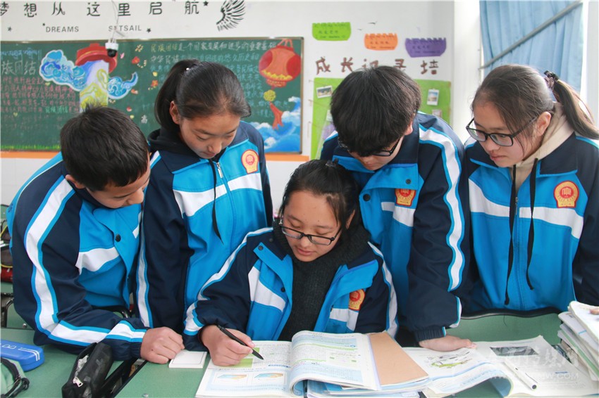 12月29日中午,記者在康定中學(xué)看到,一位皮膚黝黑、個(gè)子瘦小的女生端坐在教室里,手捧一本地理課外資料,正一臉滿足地向同學(xué)們講解著書中的“奧秘”。眼前這個(gè)“小老師”名叫擁忠夏姆,是康定中學(xué)高一年級(jí)8班的學(xué)生。